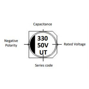 SMD Aluminum Electrolytic Capacitors, Wide Temperature Standard Type, UT series, 2 pads Capacitance: 330µF, Tolerance ±20%, Voltage 50V, Case size: ØD12.5*L13.5mm, Ripple Current 490mA Max.@+105℃, 120Hz, Lifetime 2000Hours @105°C, Operating Temp. Range: -55°C ~+105°C